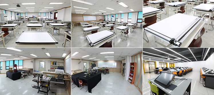 본교의 디자인 실습실은 실내건축산업기사 등 국가자격증의 검정 평가장소로 사용되는 실습실로