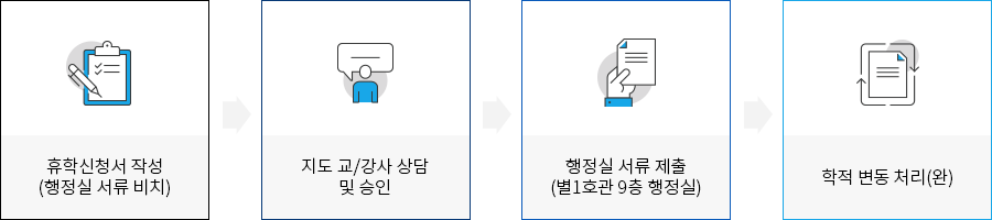 본교의 휴학은 병무를 위한 군입대 및 개인사정, 가정형편, 질병 등 수업 불능의 사유로 중도 휴학하는 자에 한하여 일정기간 휴학을 신청할 수 있습니다.